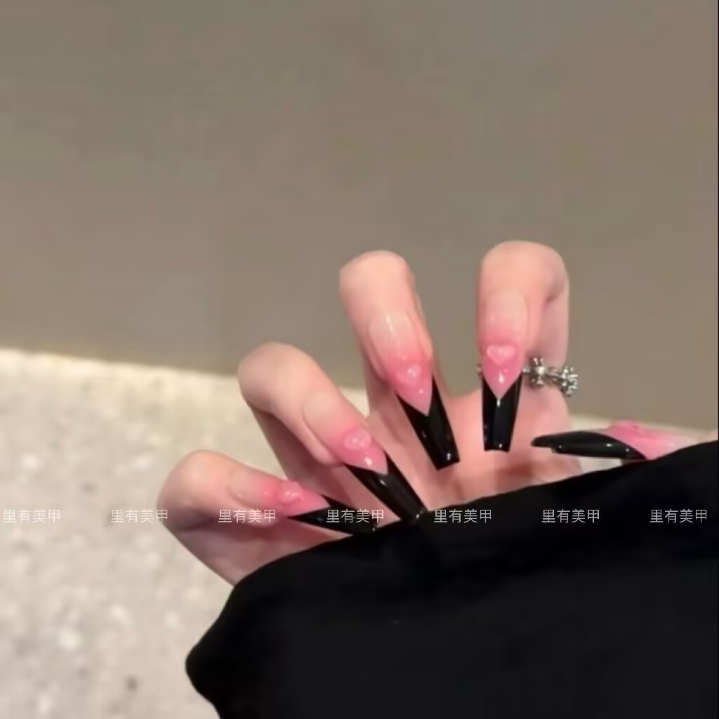 マニキュア、純粋な手作りのウェアラブルマニキュア 416 バッドガール ブラッシュ ラブ ブラック フレンチ ヨーロッパとアメリカのマニキュア