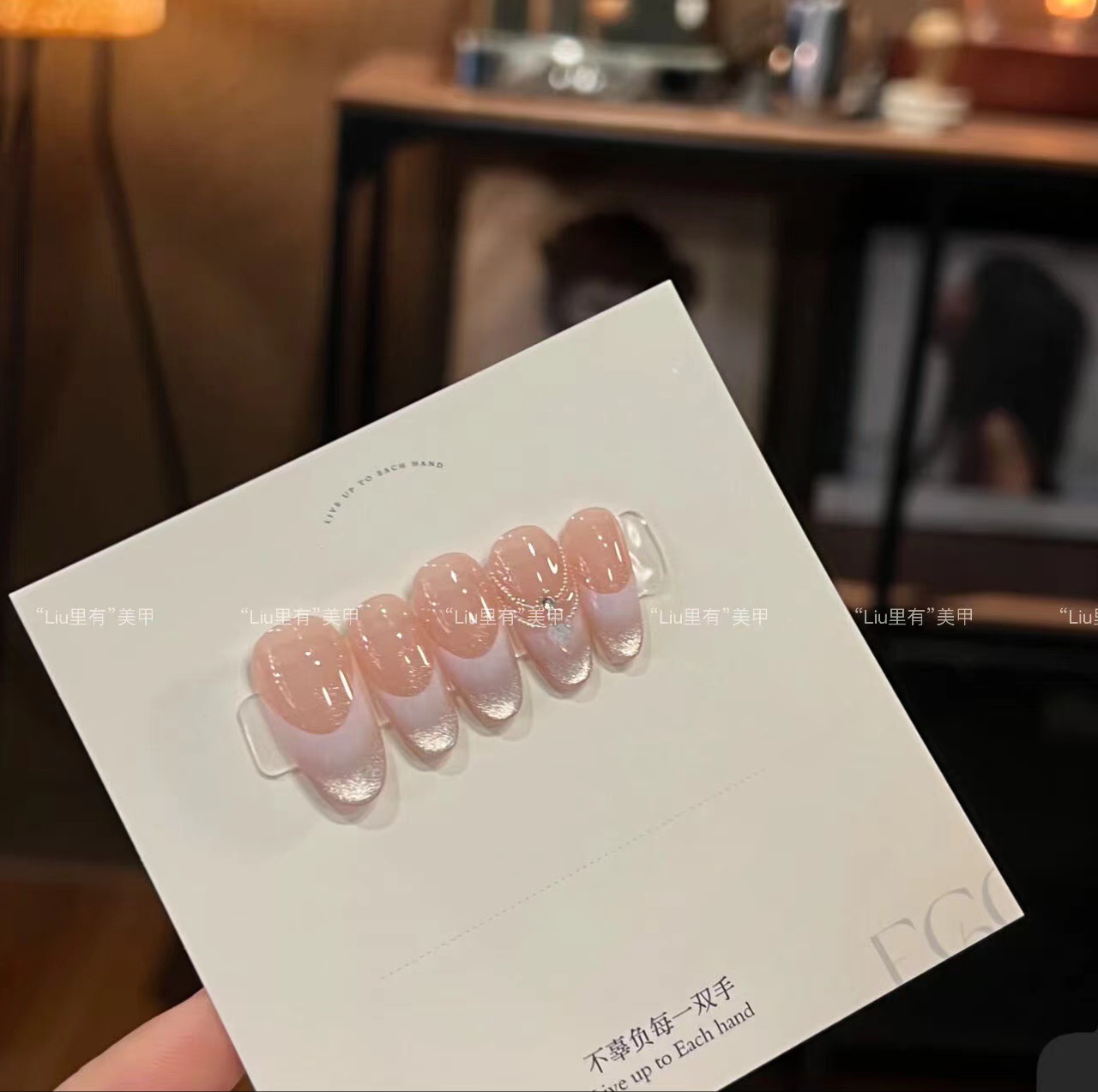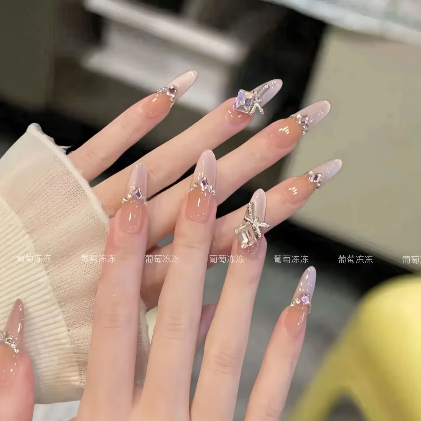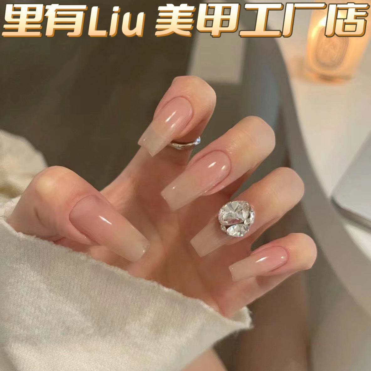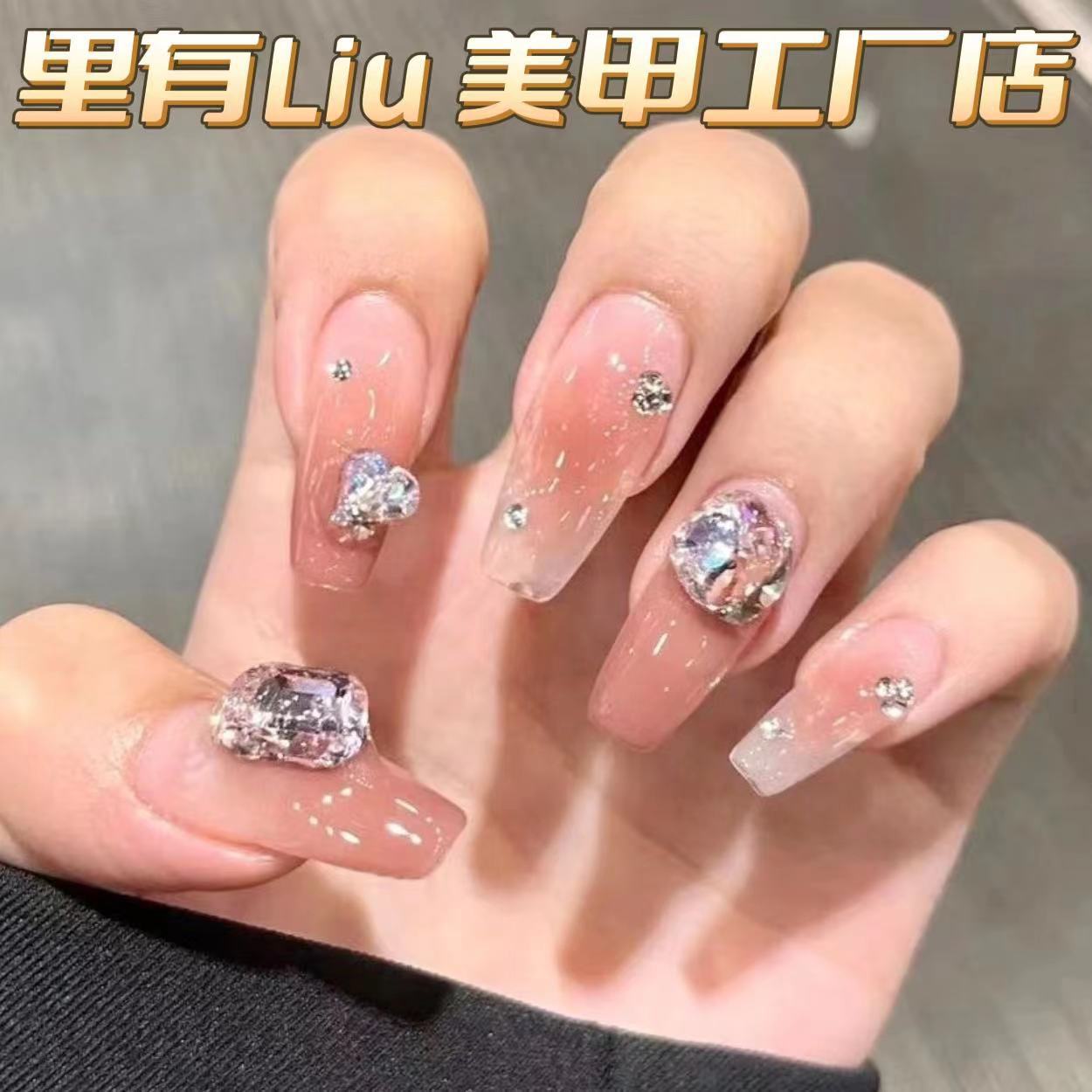 Liu Pure Handmade Wearable Nail Art Wholesale 345 Advanced Pure Desire Zircon Love Moonlight Powder Wearable Nail Art