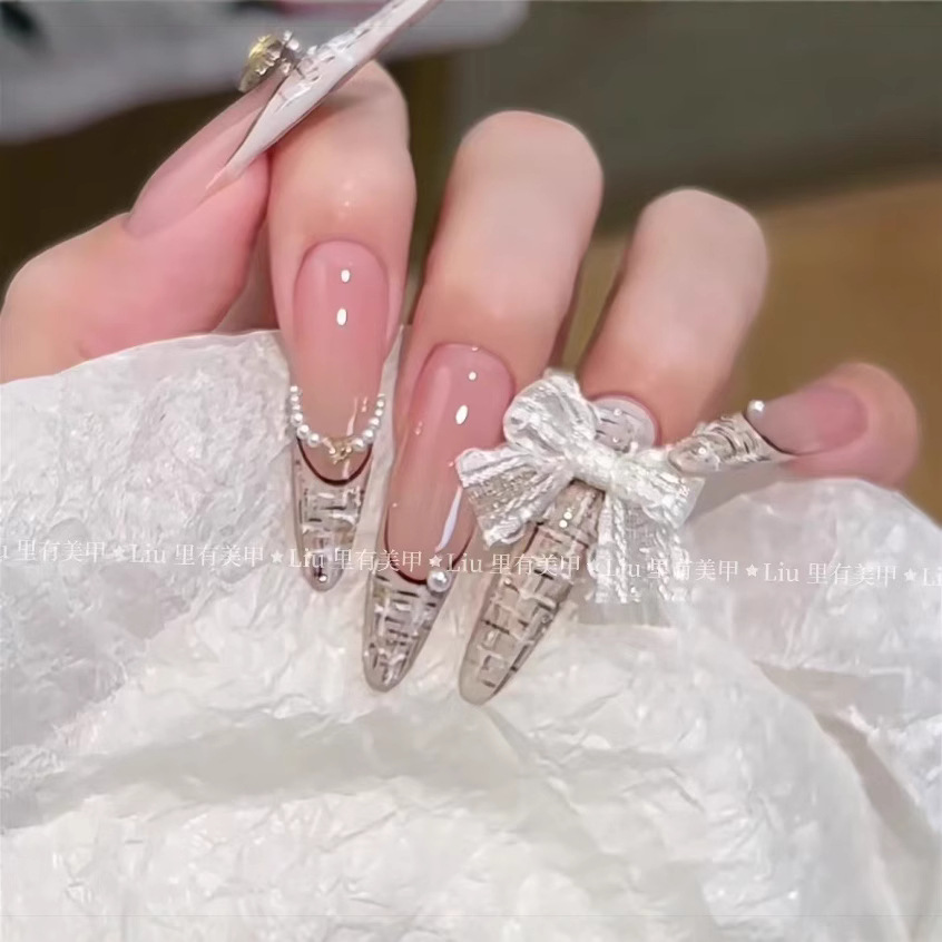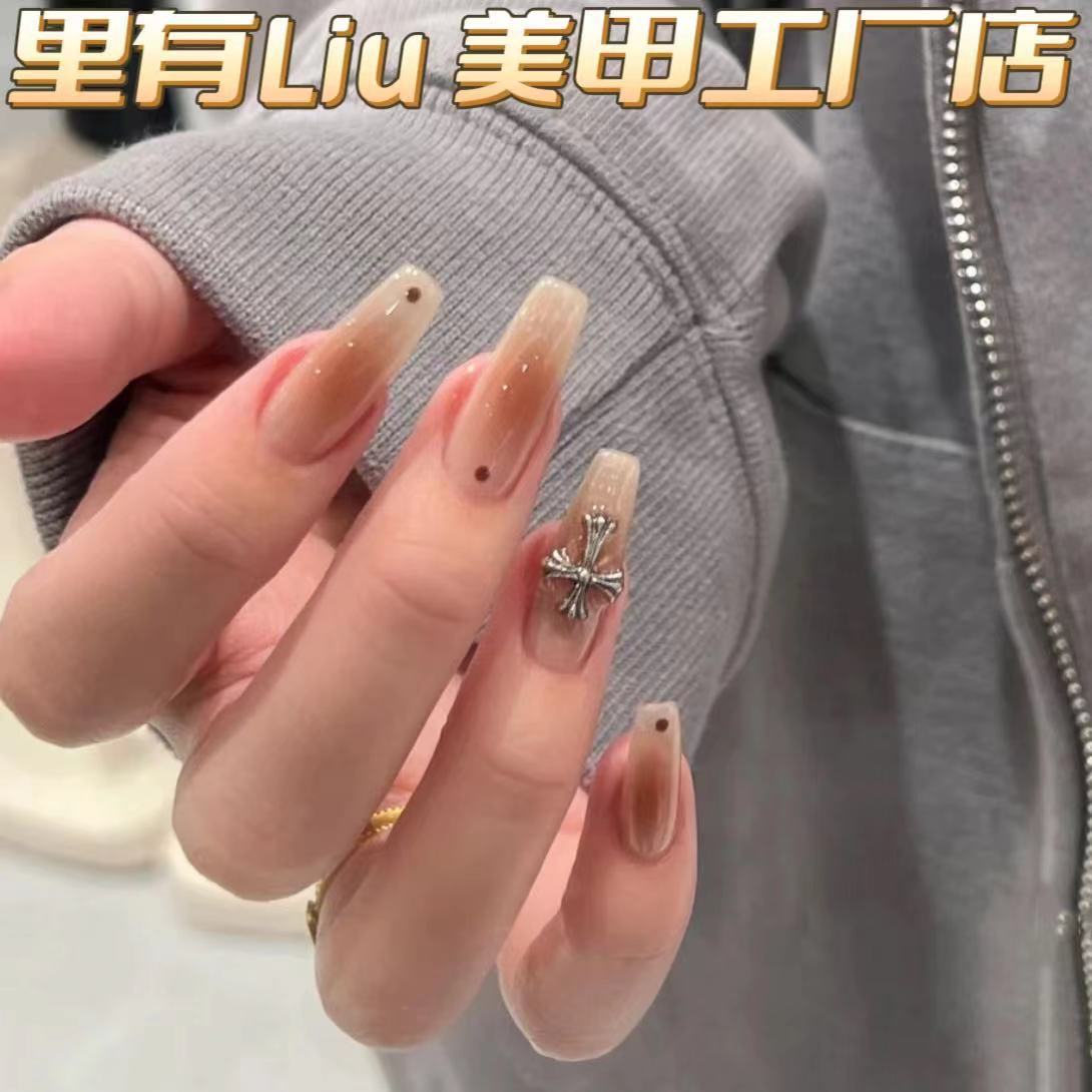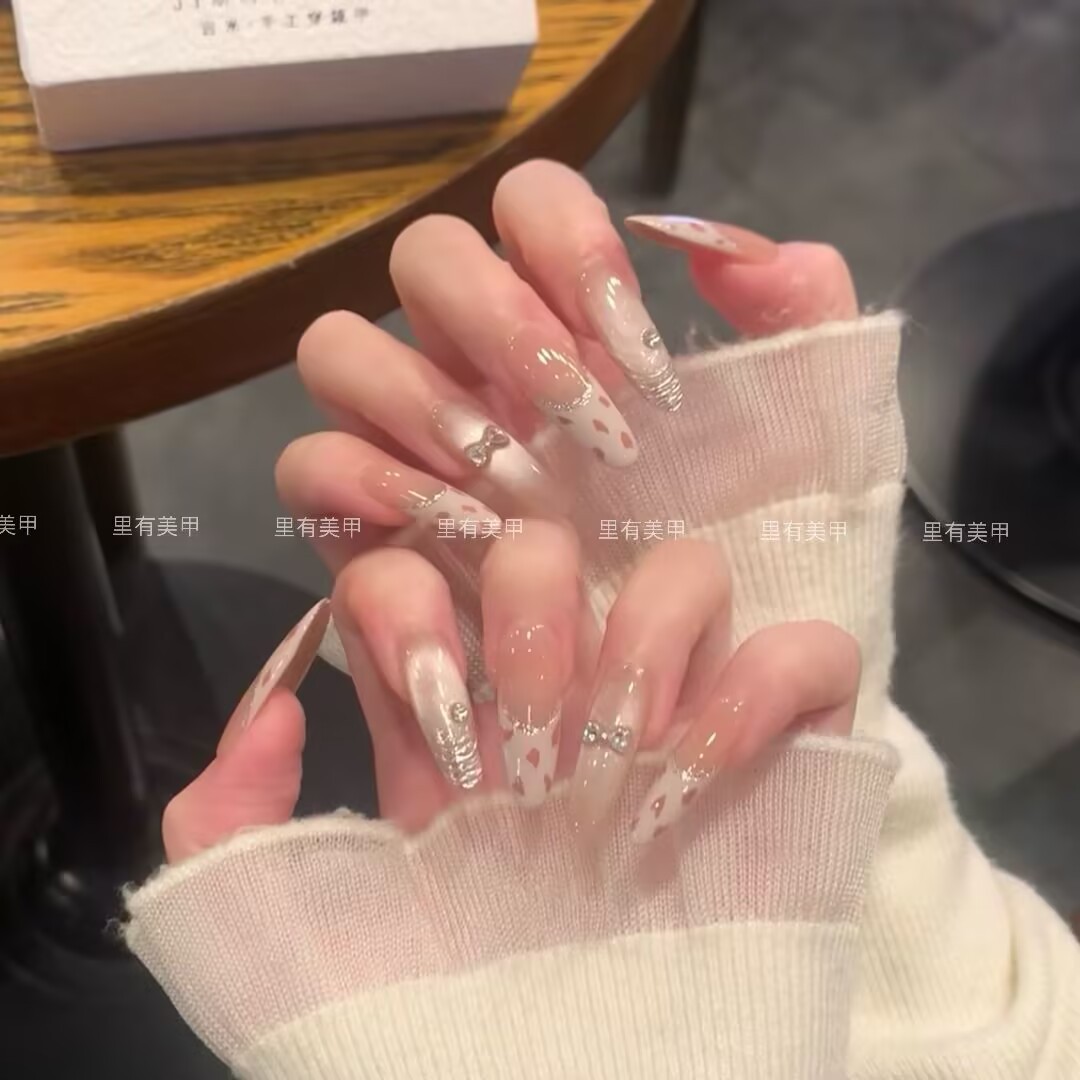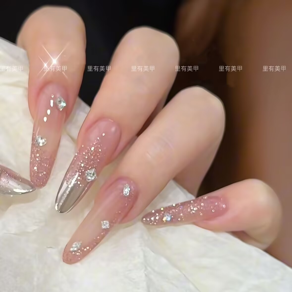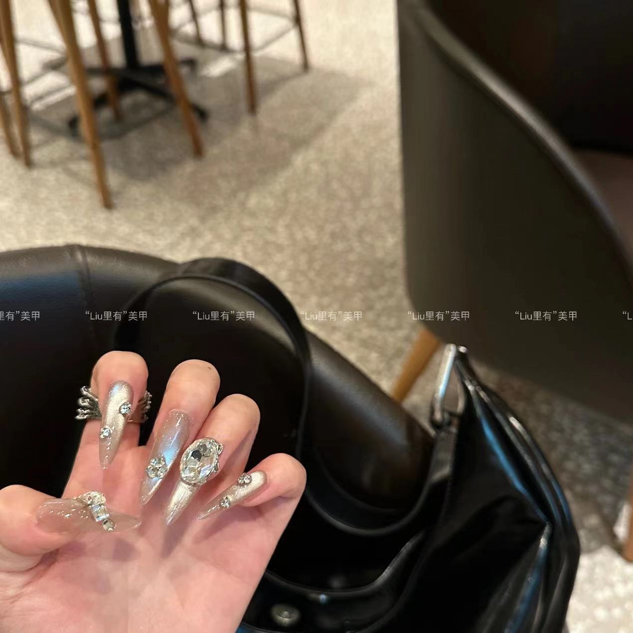 Liu Pure Handmade Wearable Nail Art Wholesale 345 Advanced Pure Desire Zircon Love Moonlight Powder Wearable Nail Art