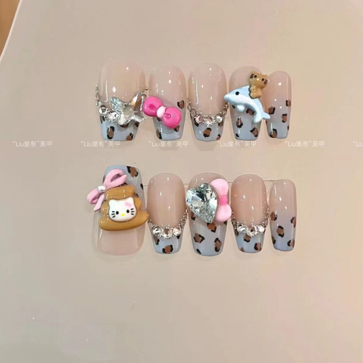 卸売342新しいレザーパウダーヒョウ柄キャットアイグラデーションハイエンドウェアラブルネイル
