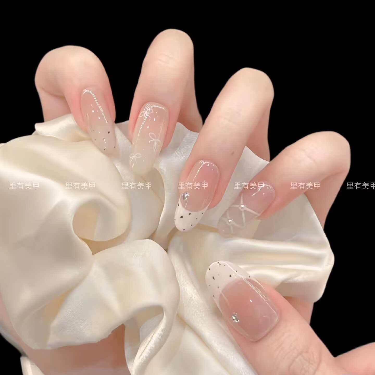 ネイルアート、手作りウェアラブルマニキュア、卸売434ハイエンドアイス透明リボン、ヨーロッパとアメリカの甘い気質のネイルアート