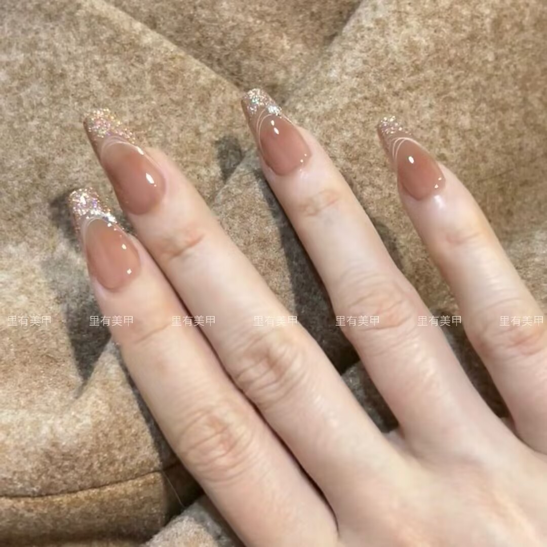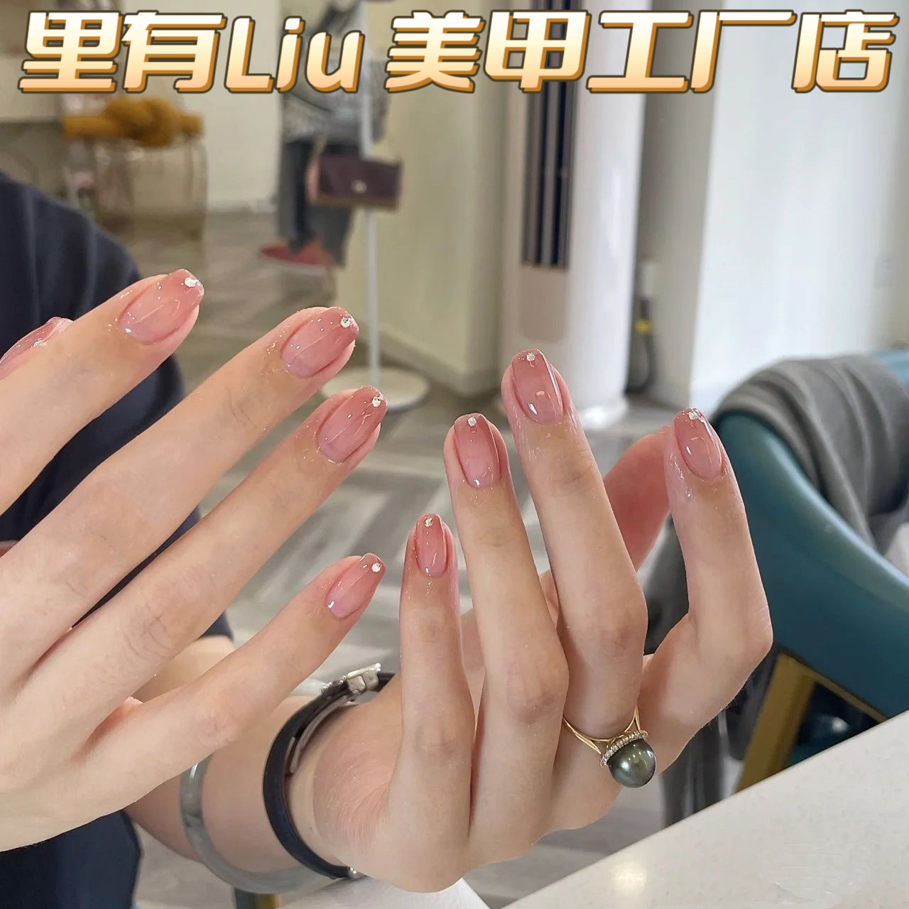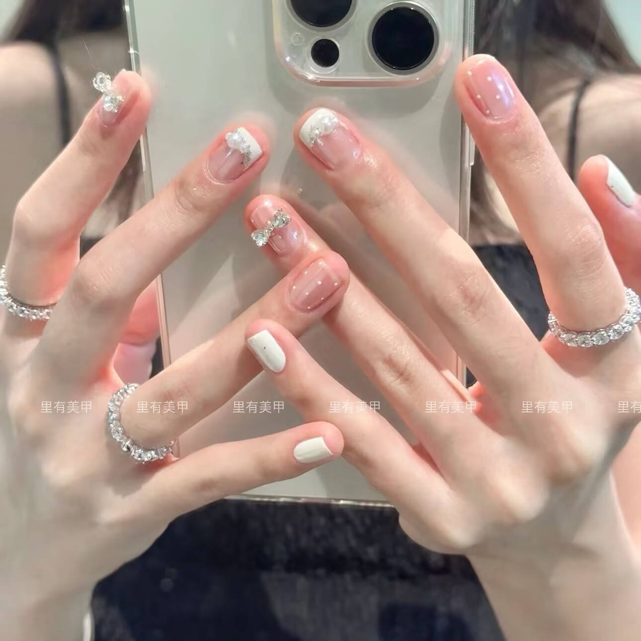 Liu Pure Handmade Wearable Manicure 346 高級フレンチアイス透明フラッシュシンプルな気質のウェアラブルマニキュア