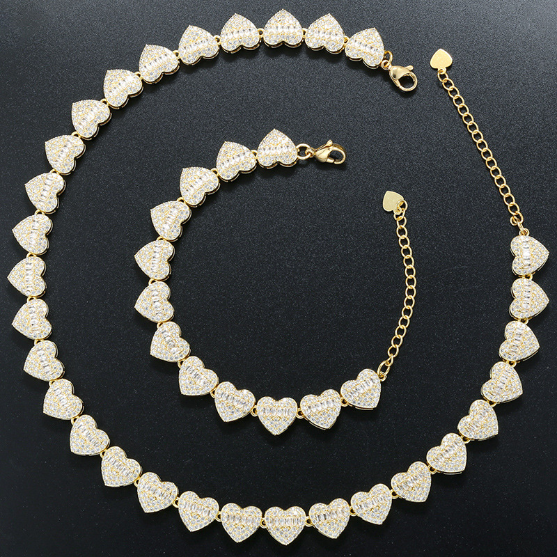 ファッションの軽い豪華な銅はジルコニウムのハート型を入れてブレスレットのネックレスの小さい大衆のヒップホップの愛の積み重ねてセットのVL602-603をつけます。
