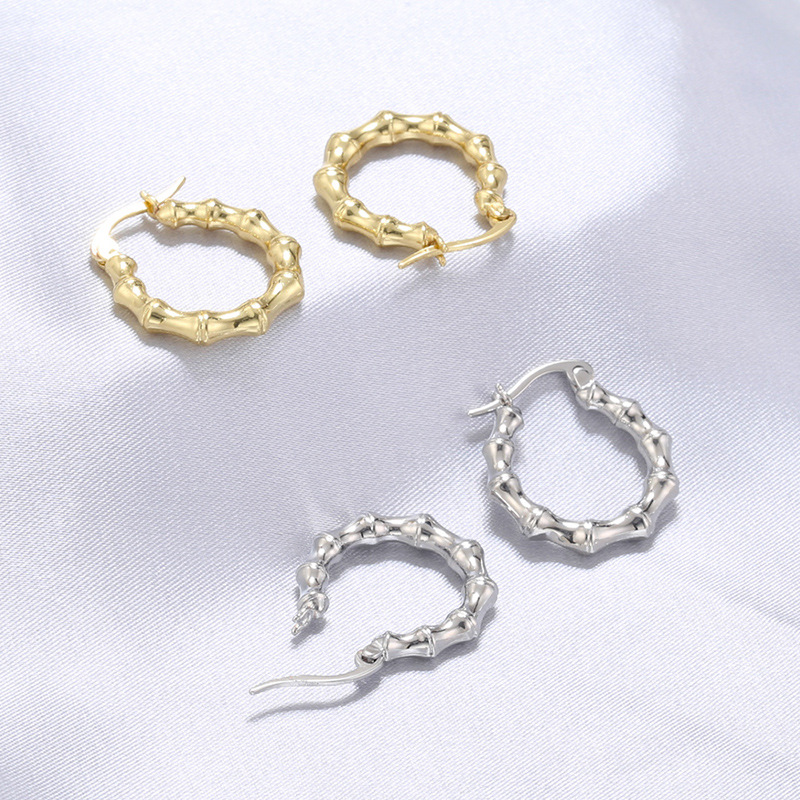 欧米のファッション銅メッキ18k金光面耳輪ins風竹節円環個性耳飾り女性ve849