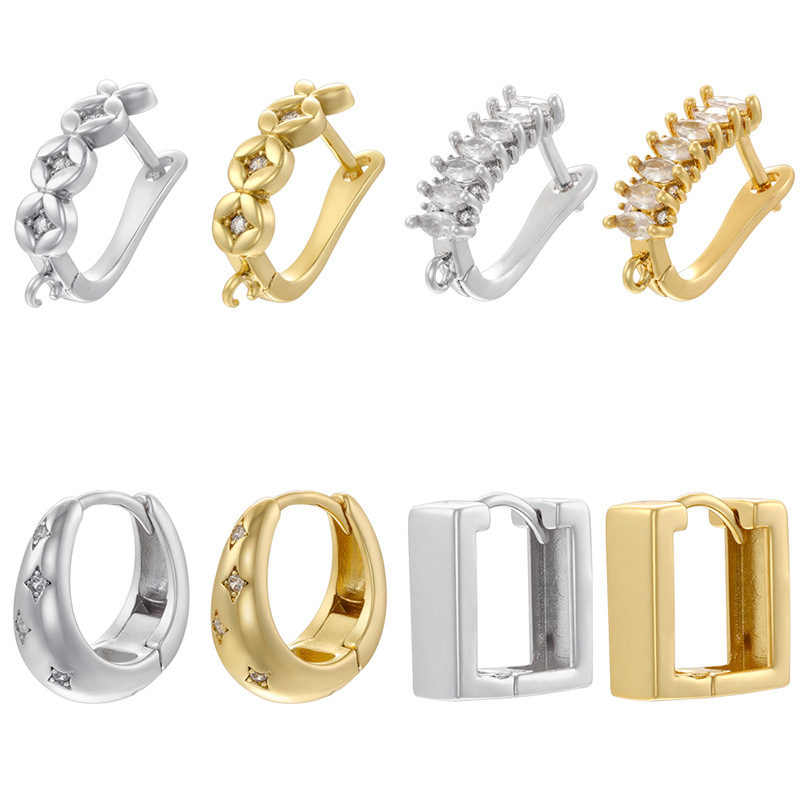 欧米の越境保色の長方形のジルコンのピアスの女性の黄銅は18kの金のイヤリングの卸売りをめっきしますve745