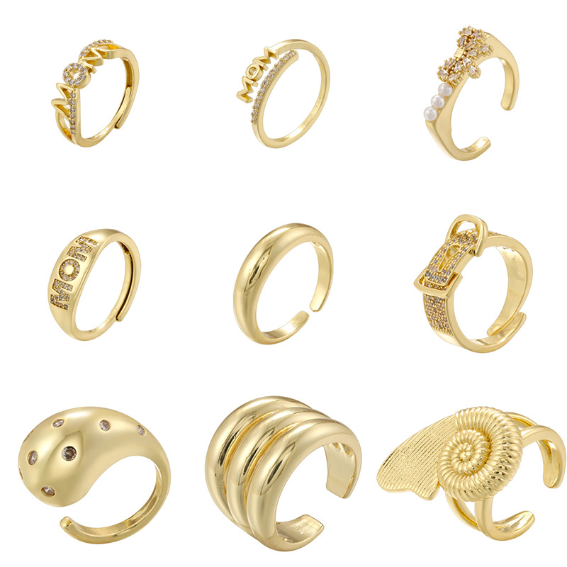 国境を越えて人気のある銅にジルコニウムを入れた英語のMOM指輪の個性的な多層水滴海蝶の口の指輪のVJ690-698