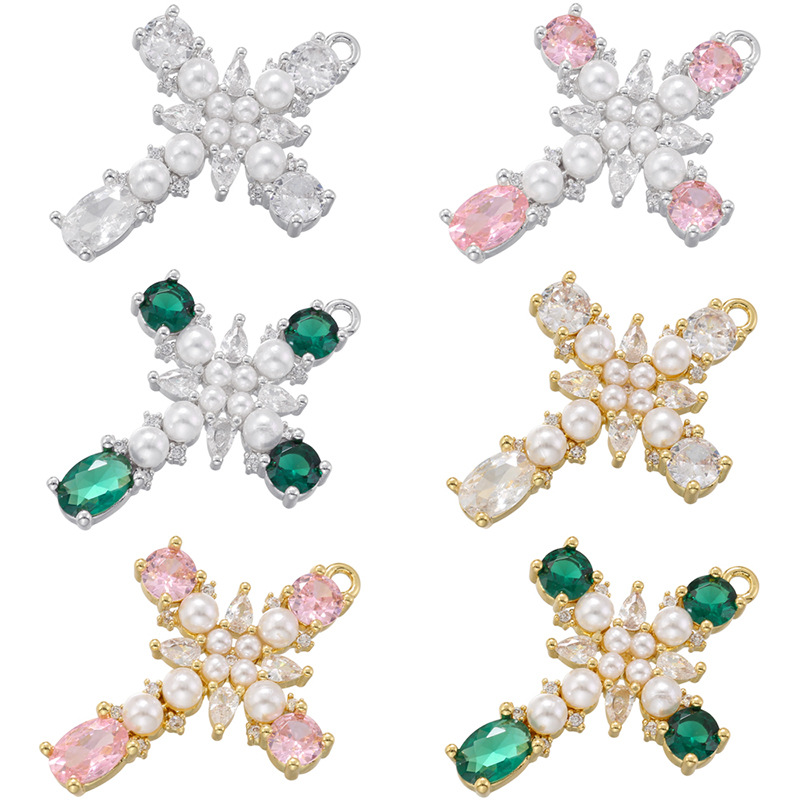 欧米の国境を越えた銅メッキ18k金のダイヤモンドのクロスペンダントの個性的なヒップホップの真珠のペンダントvd1376