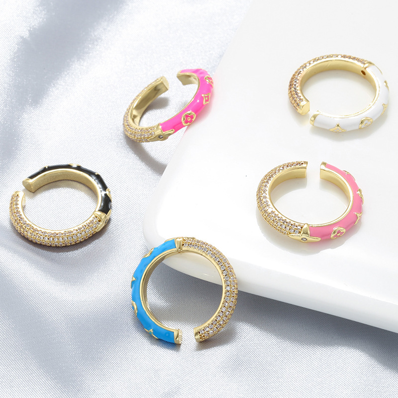 欧米の国境を越えたカラーの四葉草の指輪の女性の小衆の高級感の半分のジルコンはリングVJ679を畳んでいます。