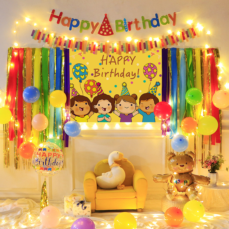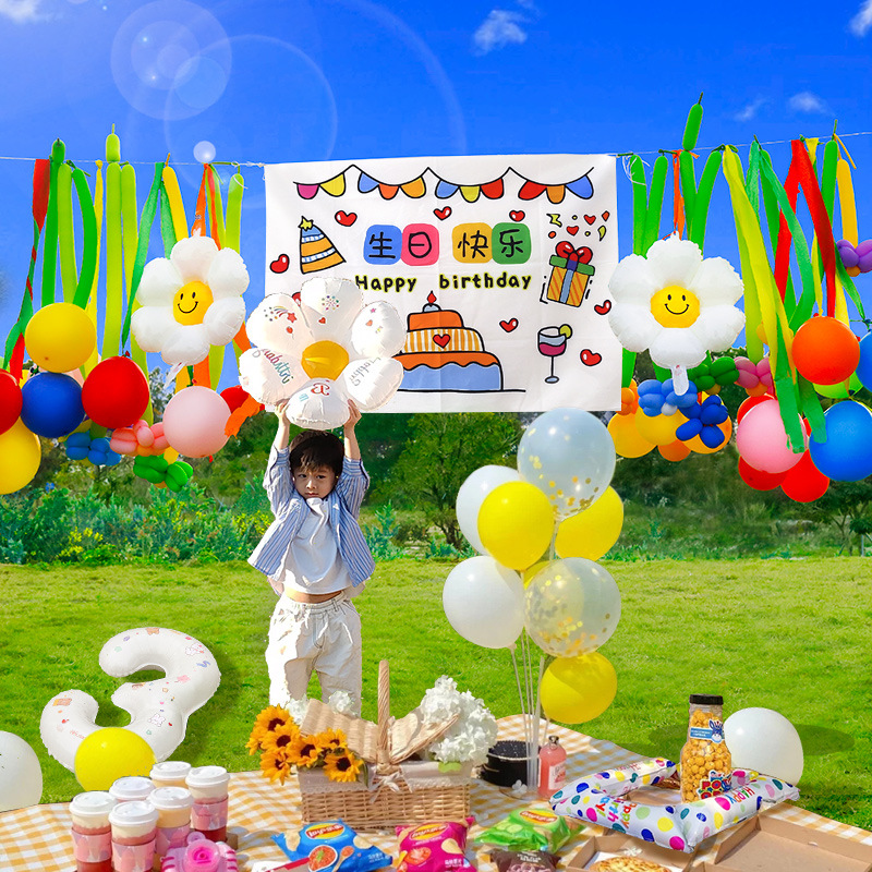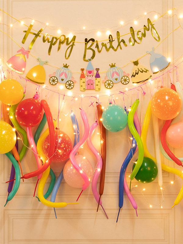 ネット赤ins長条風船小紅本子供女の子赤ちゃん誕生日パーティー装飾背景壁シーン配置