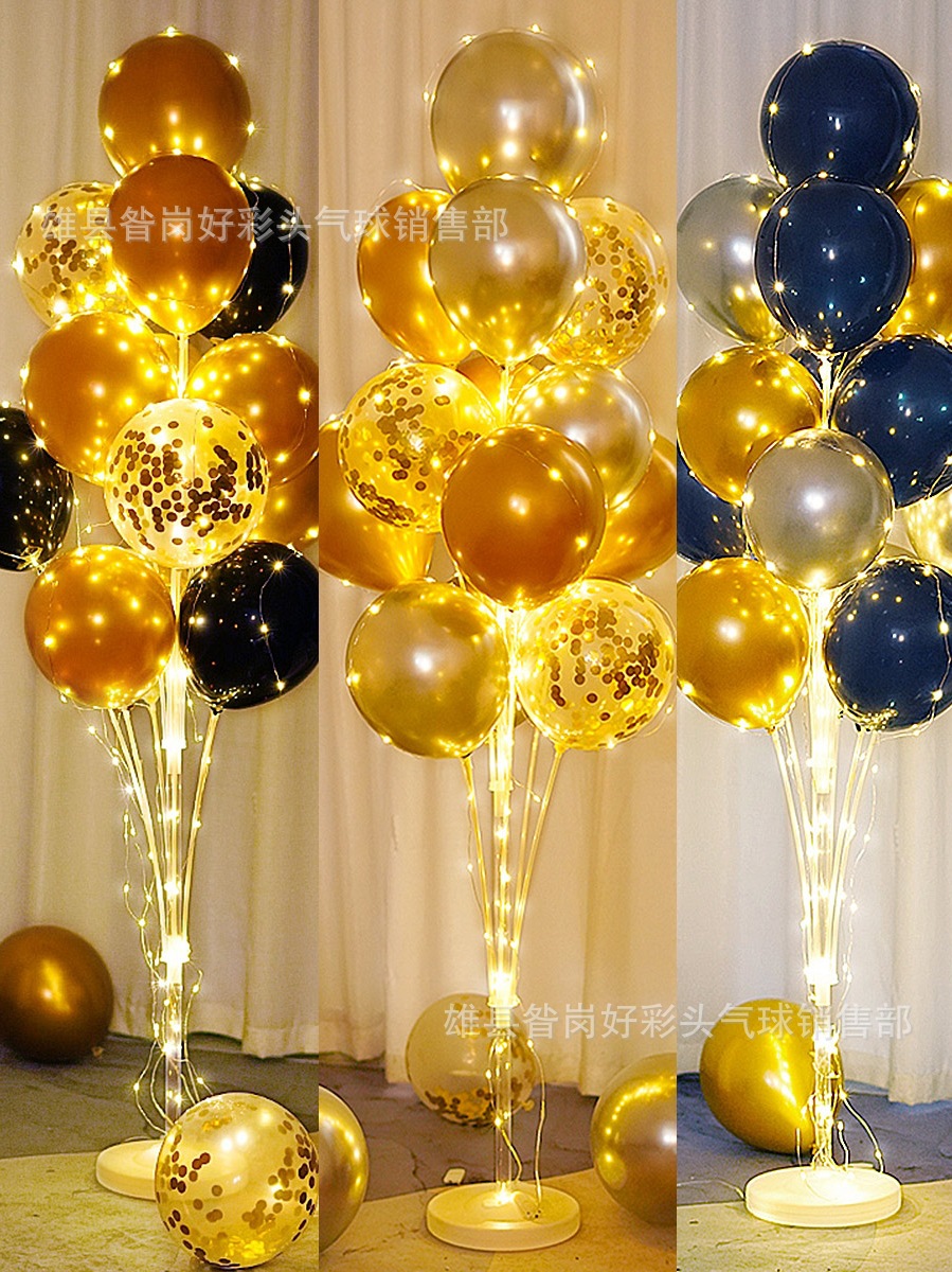 床に落ちて光る柱の地面に風船のスタンドがあります。