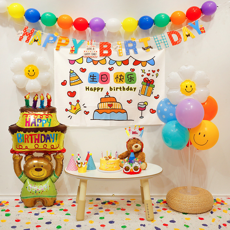ネット赤クリーム色デジタル風船女の子男の子誕生日パーティー装飾品赤ちゃん歳シーン配置