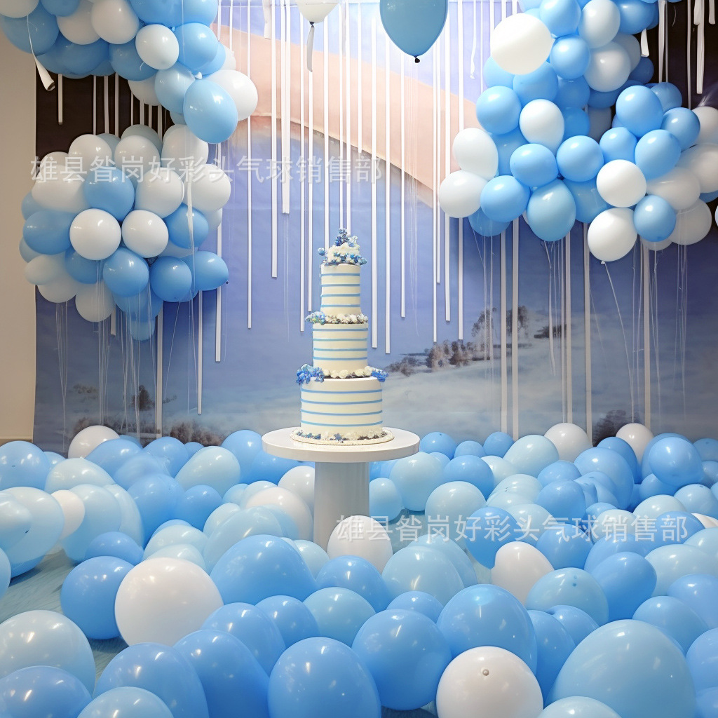 厚いマカロンの青い白い風船の子供は無毒です。誕生日パーティーは結婚します。