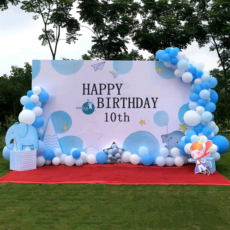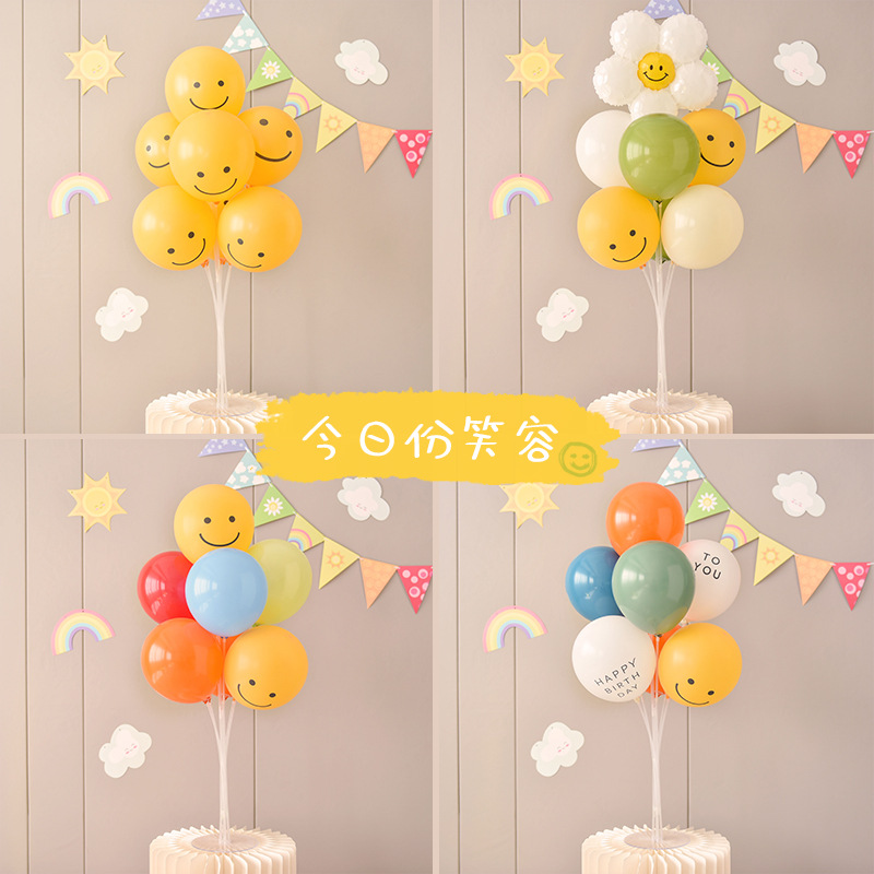 小紅書は満1歳で百日の写真撮影用品のテーブルに風船を浮かべて誕生日のピクニックのシーンを飾ってパーティーの宴会を手配します。