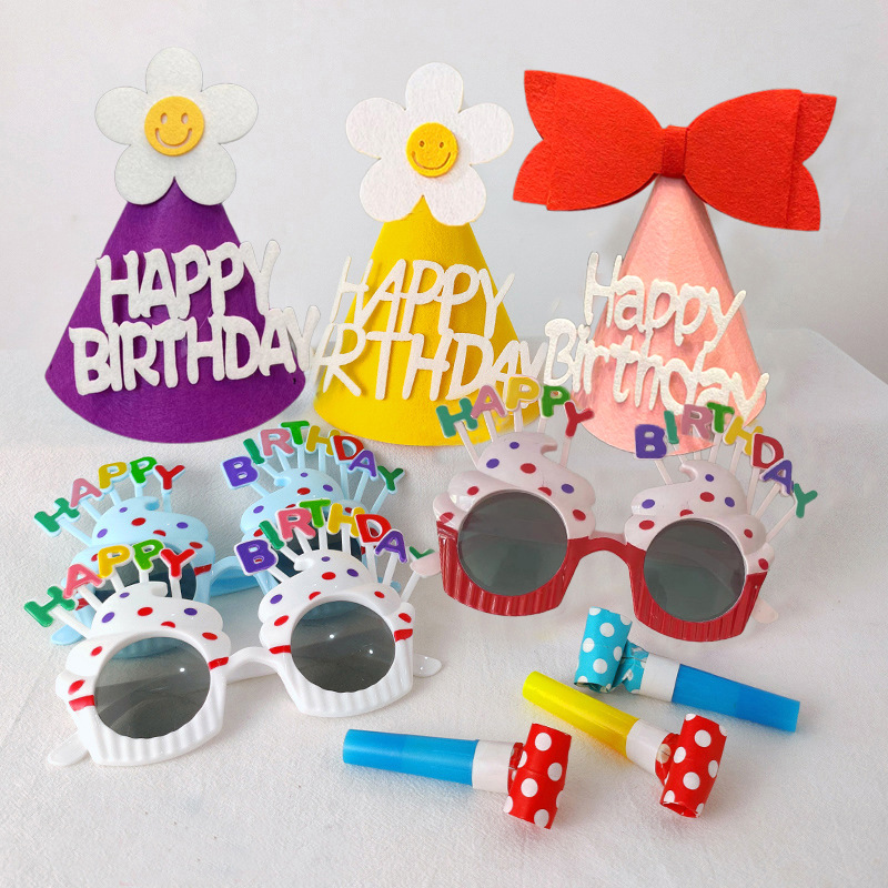 子供用メガネの帽子赤ちゃんの歳のパーティーは祝日を飾ってシーンのテーマを飾って写真を撮ります。
