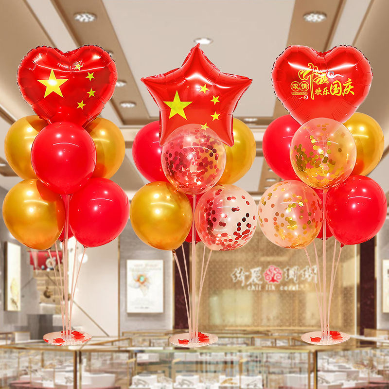 中秋節の国慶節の雰囲気感風船の柱のスタンドが床に落ちてテーブルが漂って店舗のデパートのシーンを飾って配置します。