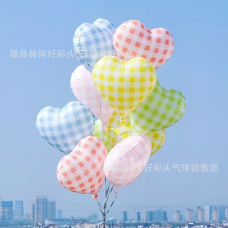 18inch インターネットセレブ愛青と白のチェック柄リトルレッドブック写真子供の日アルミフィルム正方形ハート型バルーン誕生日アレンジメント