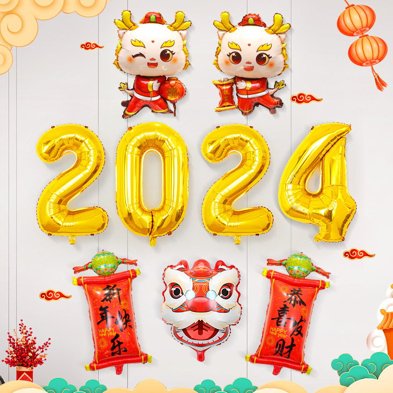 2024龍年新年アルミ膜風船装飾商店学校幼稚園クラス活動雰囲気シーン配置