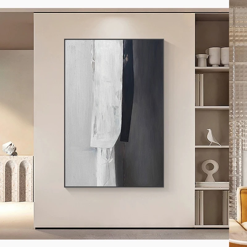 アルミニウム合金の白黒装飾絵画、モダンな壁掛け絵画、高級北欧リビングルームの背景壁、ホテルのスプレーペイント絵画