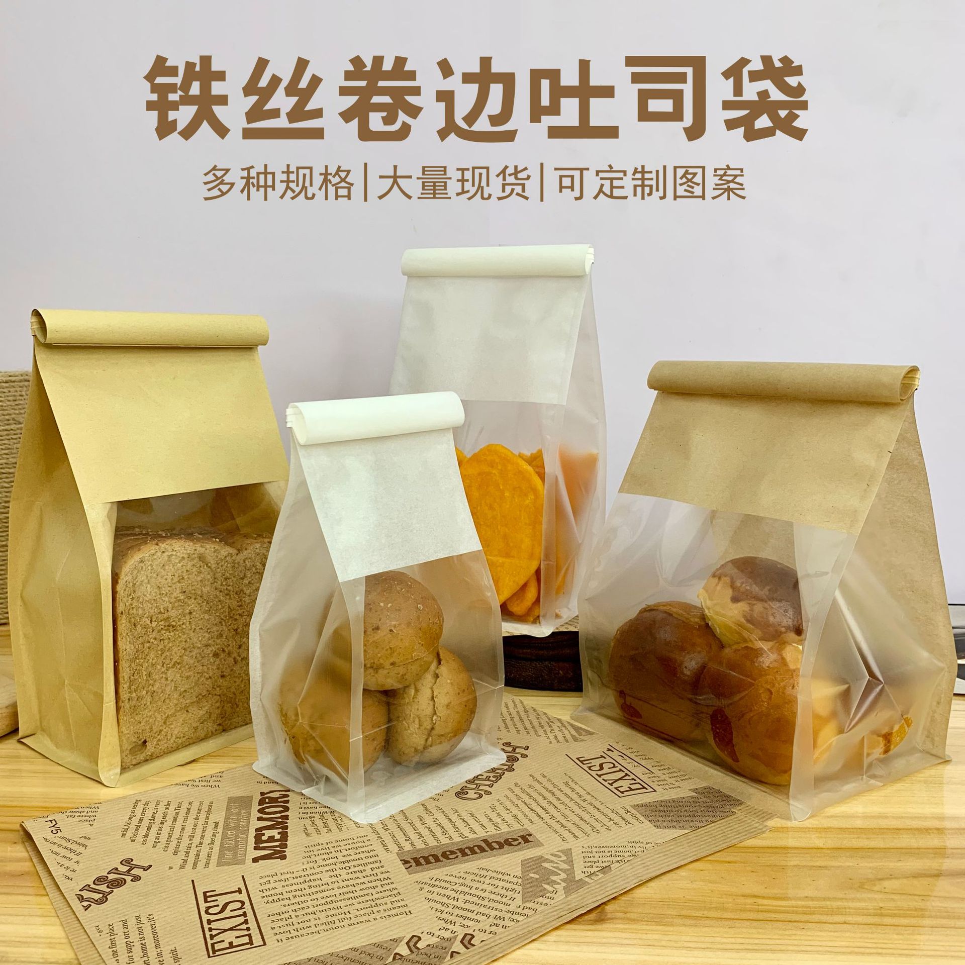 綿紙クラフト紙針金巻き縁トースト袋パン焙煎包装袋八辺封窓西点ケーキ袋