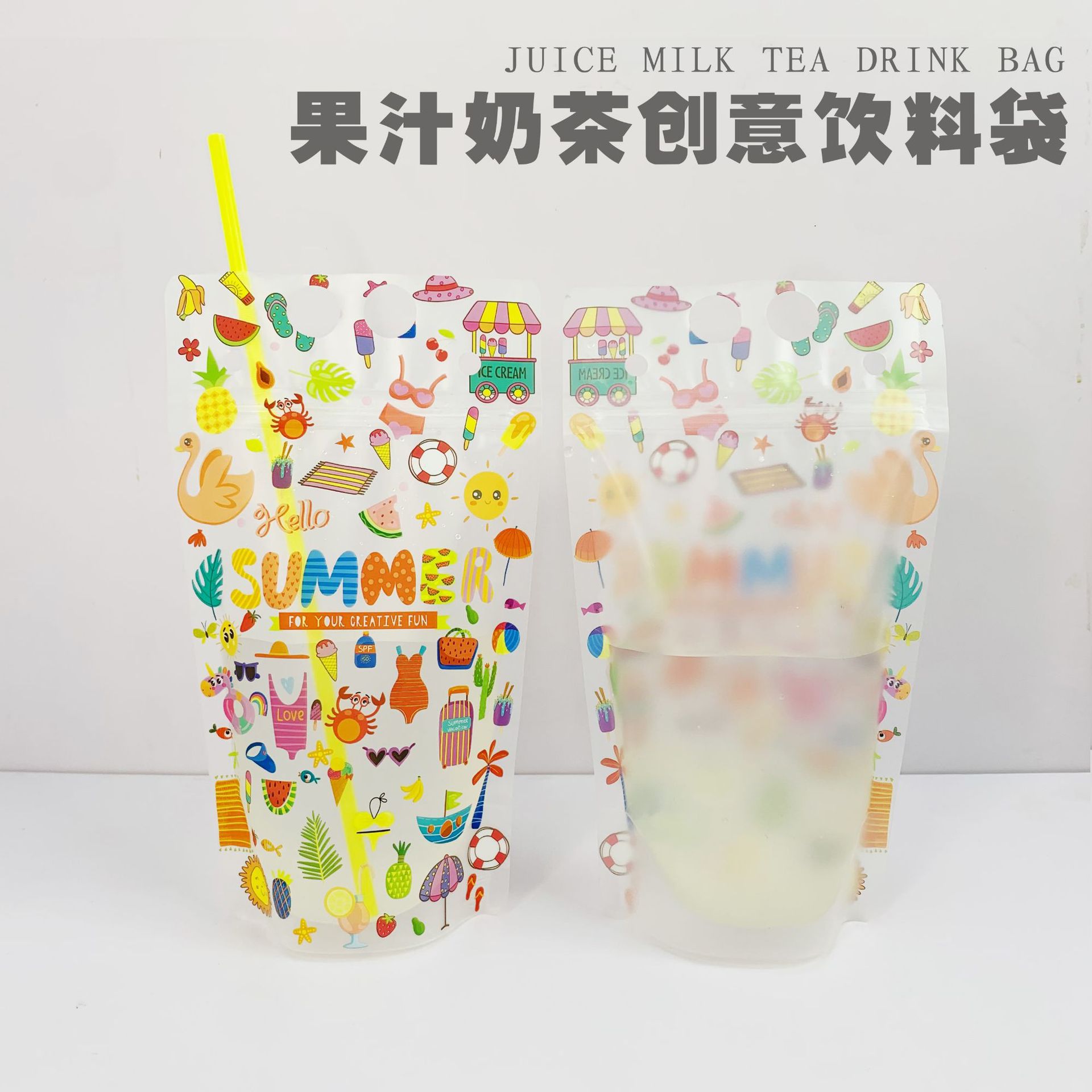 飲料袋自封フロストジュースミルクティー豆乳包装袋使い捨て宅配包装袋透明袋