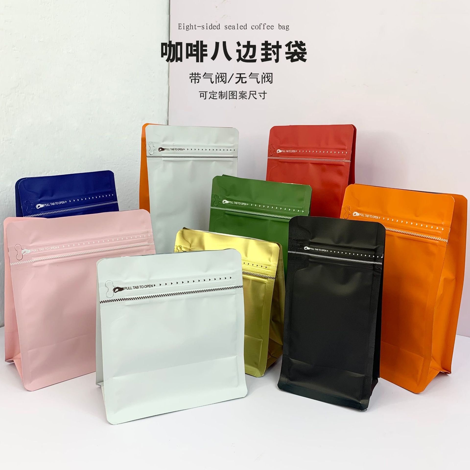 カラーコーヒー豆バルブ八辺シール包装袋アルミ箔ジッパーコーヒー袋茶葉ナッツ自立食品袋