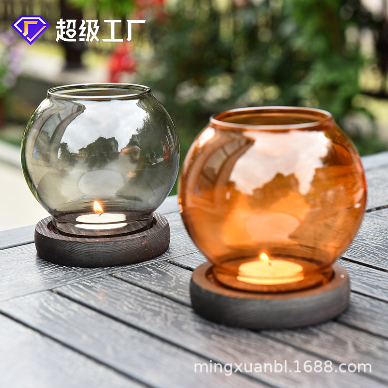 ヨーロッパカラーガラス燭台キャンドルディナー禅意レトロ家庭用防風キャンドルカバー中国式置物