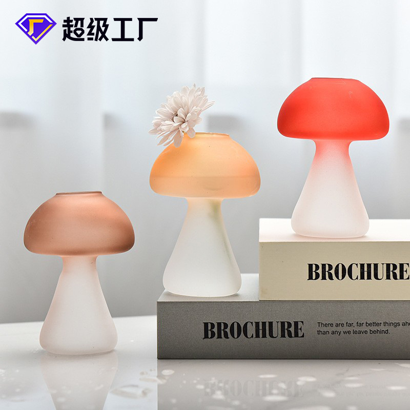 クリエイティブキノコ花瓶カラー透明ガラス水培花瓶家庭装飾特色アロマボトル置物
