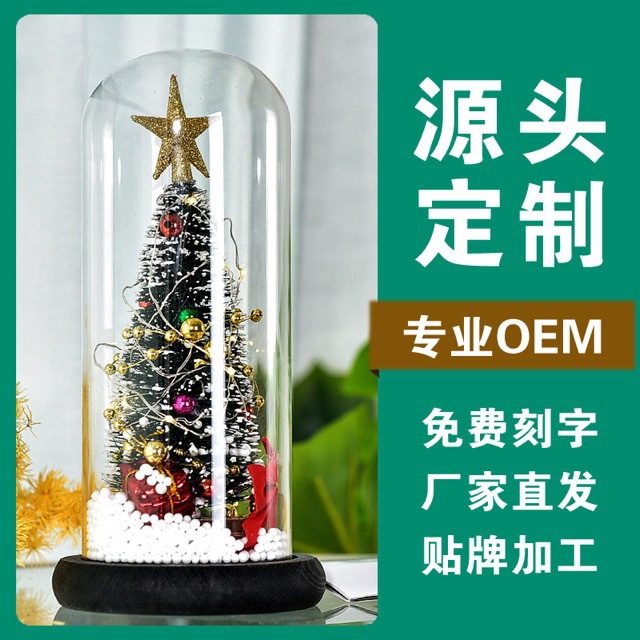 カスタマイズされたクリエイティブクリスマスツリーのガラスカバーは、雪松ショーウインドーの撮影道具のデスクトップクリスマスプレゼントを飾っています