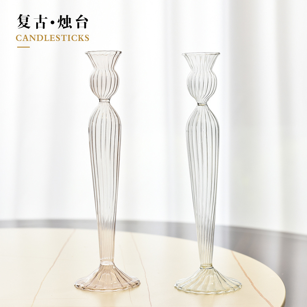 創意的なストライプのフランスのガラスの燭台のろうそくの光の夕食のカラーのろうそくの台のデスクトップの置物の結婚式の撮影の道具