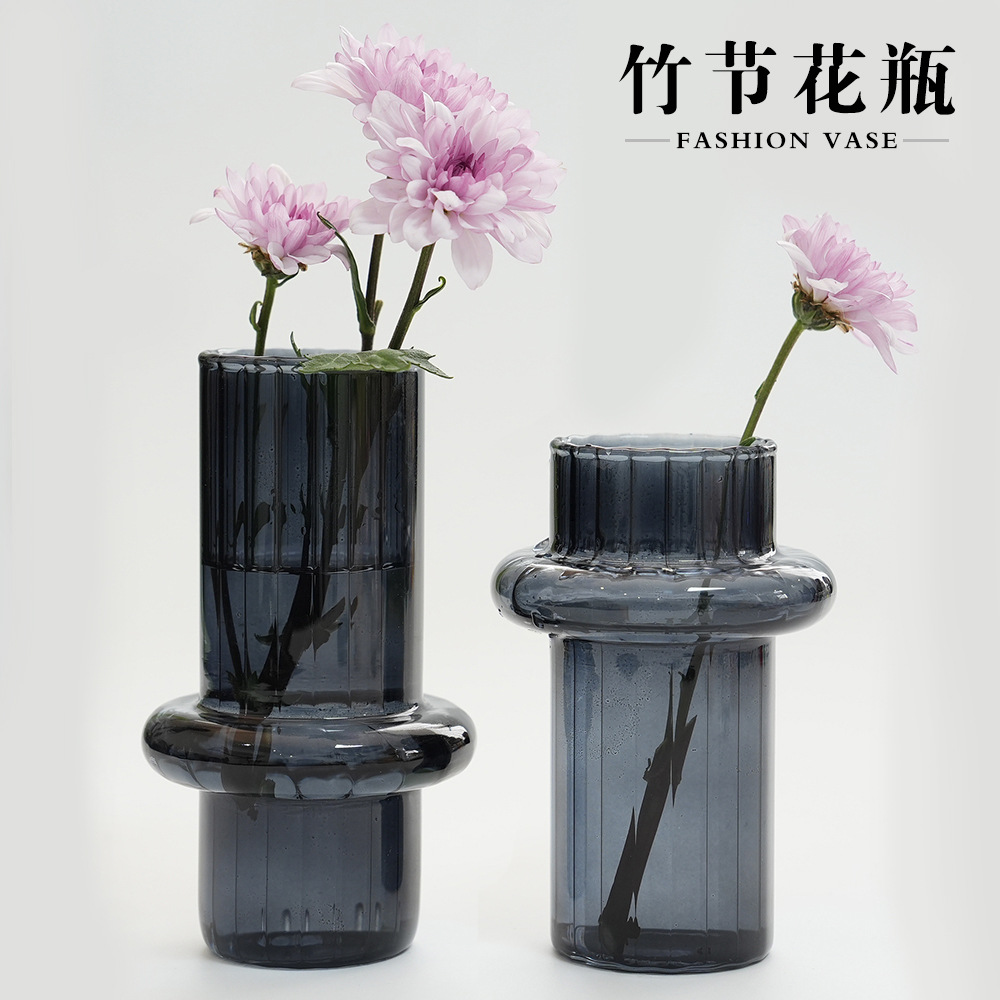 北欧の軽い豪華な煙の灰色の竹の節のガラスの花瓶のシンプルなアイデアのデスクトップのアロマボトルの置物の水培花器