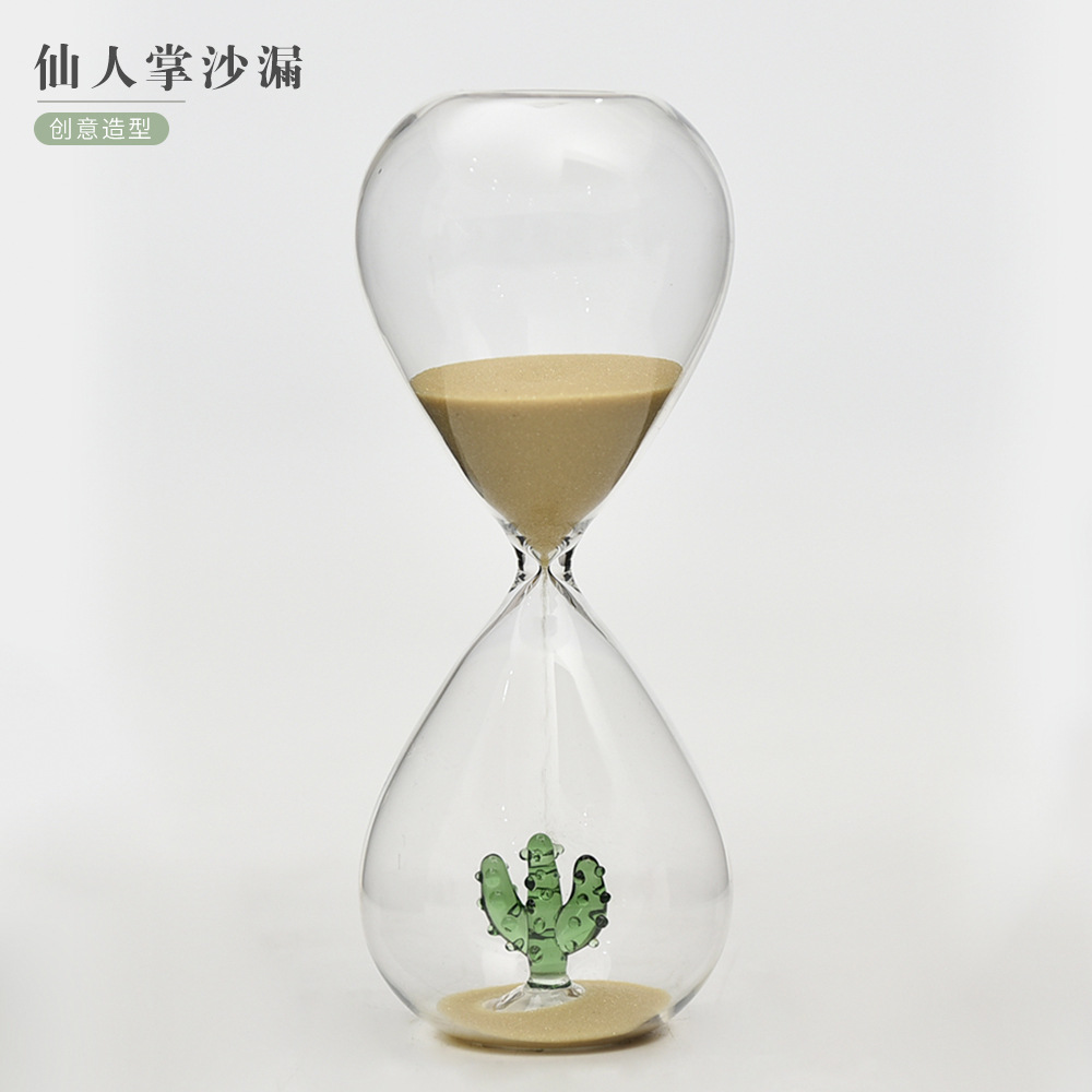 アイデア15分サボテン砂時計3d造形家庭装飾ガラス砂時計工場卸売り