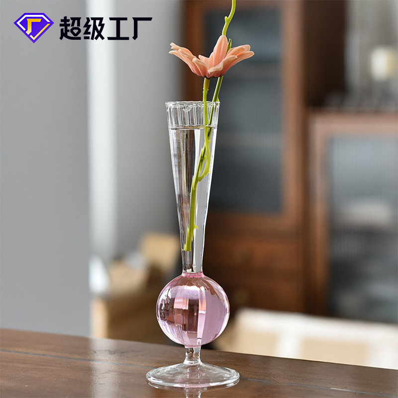 クリエイティブストライプ花瓶水耕栽培球形ガラス花瓶透明カラー生け花器食卓装飾工場卸売り