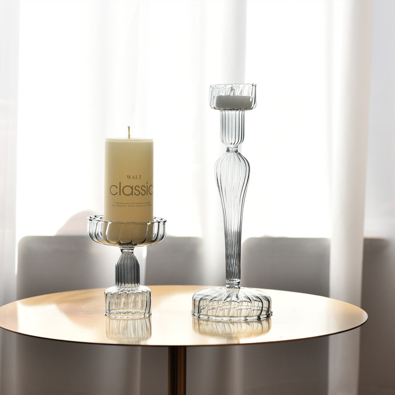 クリエイティブストライプガラス燭台透明カラー燭台食卓ヨーロッパ風装飾両用燭台メーカー卸売り