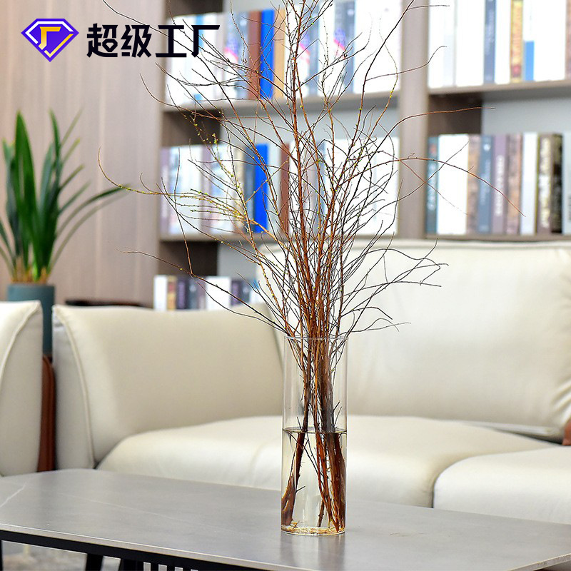 生け花透明ガラス花瓶北欧富貴竹馬酔木雪柳枝直筒大サイズ着地置物客間