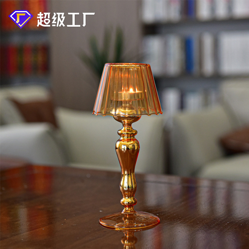 オーダーメイドクリエイティブなガラスの燭台の置物北欧ロマンチックでシンプルな現代家庭用デスクトップ無煙バターランプ