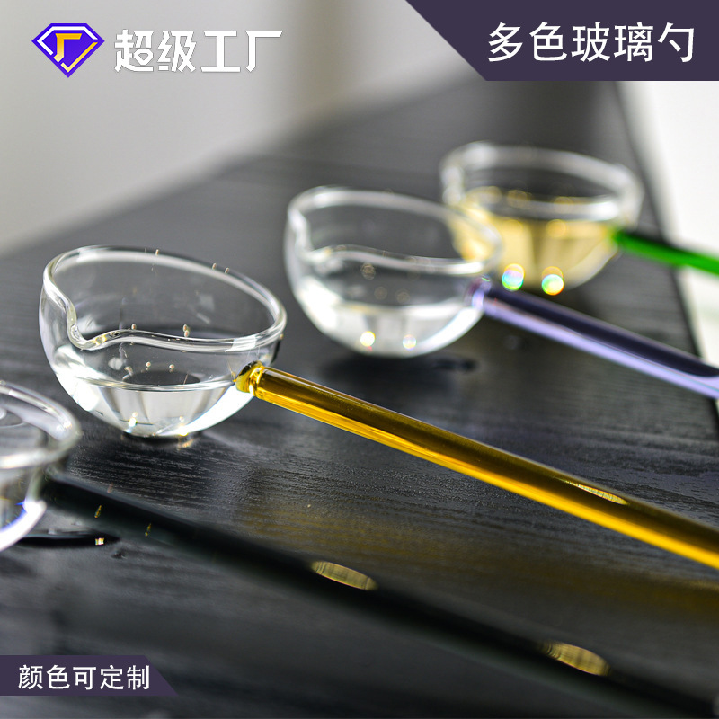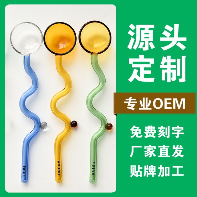 カスタム耐熱ガラススプーンカラー丸頭円形ガラススプーンコーヒー牛乳攪拌棒デザートスプーンガラススープ