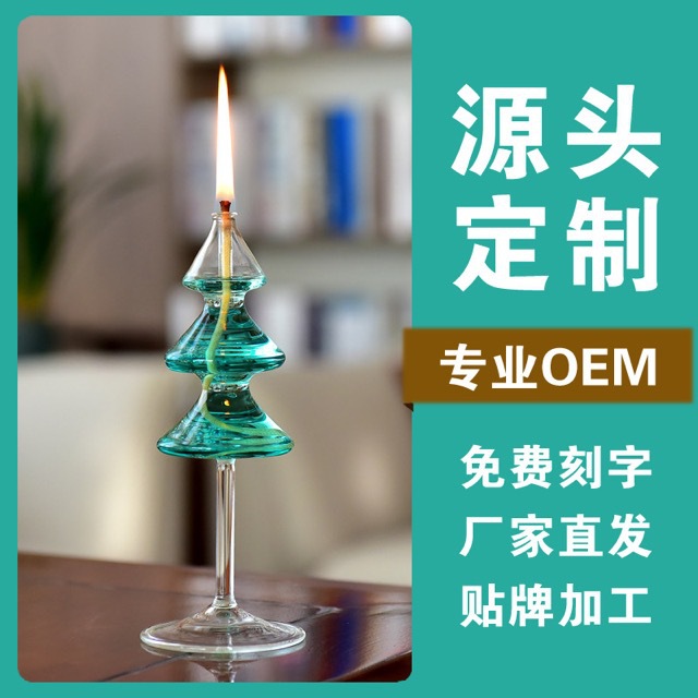 クリスマスツリーのガラス燭台をカスタマイズして北欧のロマンチックでシンプルな現代家庭用デスクトップ無煙のショートニングランプを飾る