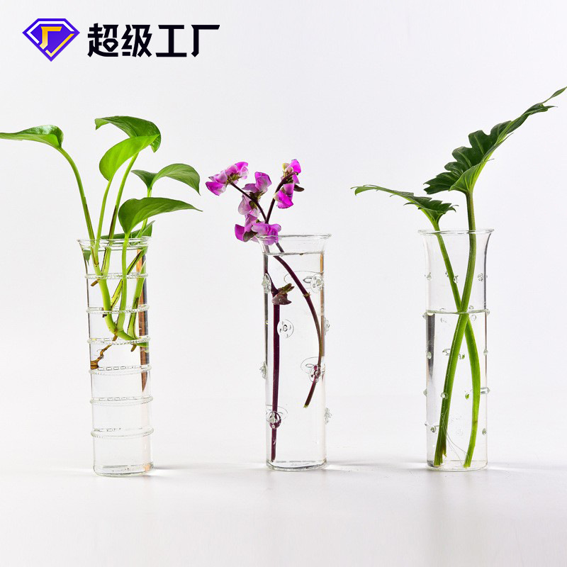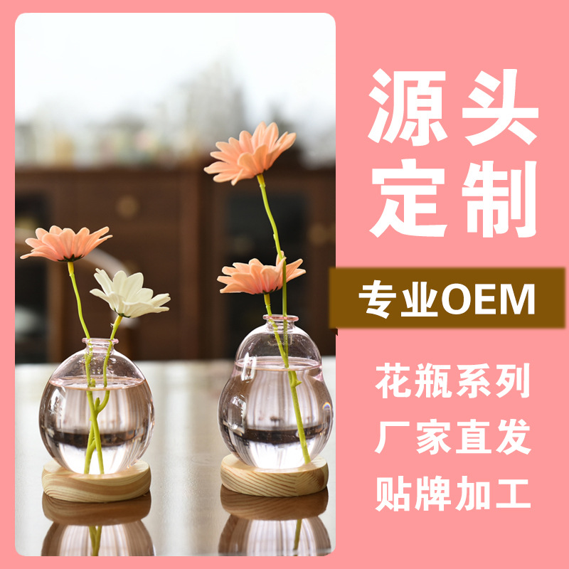 北欧風透明ガラス花瓶置物デスクトップシンプル水養花瓶ドライ花花花個性水培花器