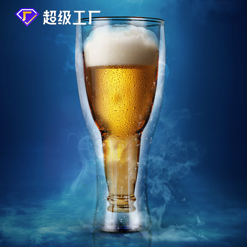 ガラス二重カップ逆さまビール瓶二重グラスビールマグバークラブ個性カップ