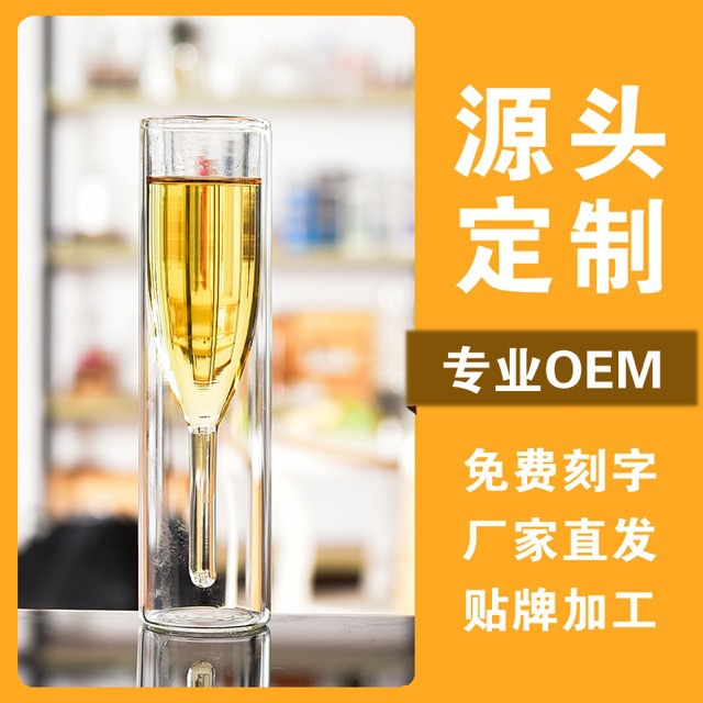 カスタム透明ガラス二重シャンパンカップワイングラス高足カップ気泡カップカクテルカップ個性グラス
