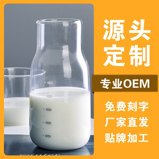 メーカー特注の和風一壺一杯ガラス製ミルクカップ、目盛り付きジュースカップ、家庭用ミルクカップ