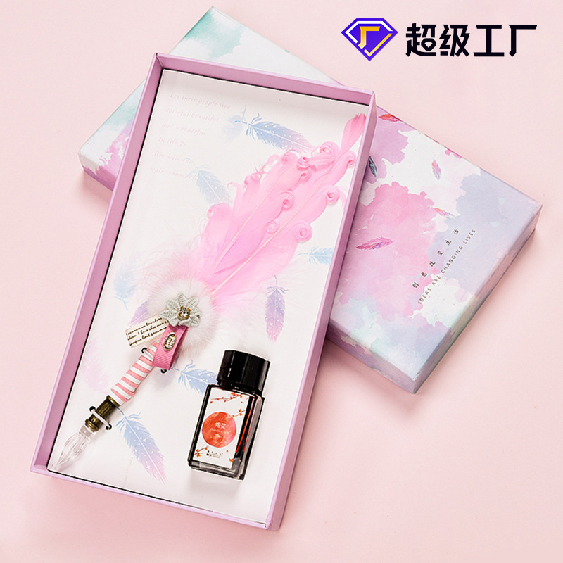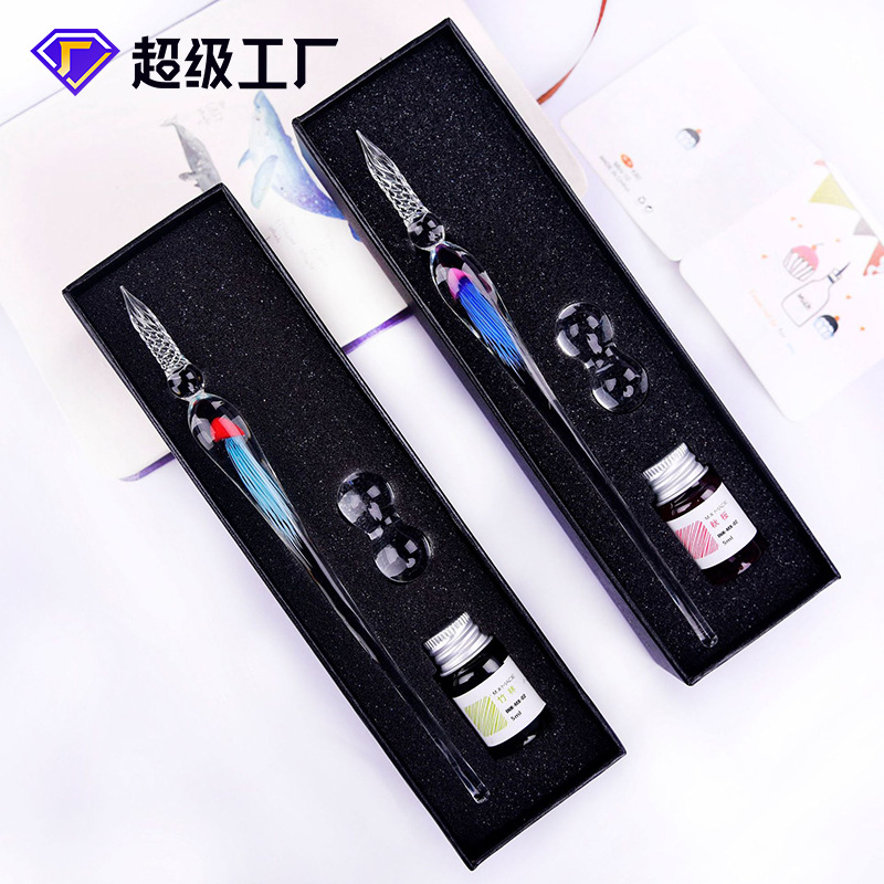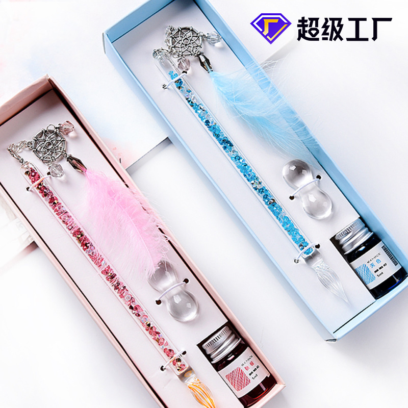 クリエイティブな水筆セットのディザトーン手作りガラス筆羽筆ギフトボックス水晶インク文房具プレゼント