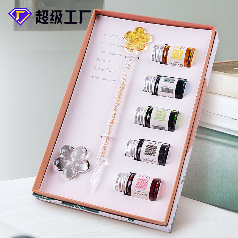 メーカー直販創意乾花筆カラーガラス付水筆ギフトボックスセットサインペンガラスペンビジネスプレゼント