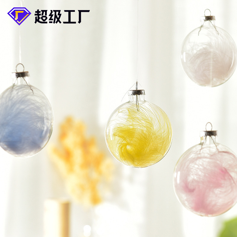 装飾的な透明なボールの羽の丸いボールのガラスの中空のボールは吊り下げのペンダントの吊り下げのボールのアイデアのdiy装飾のボールを配置します。