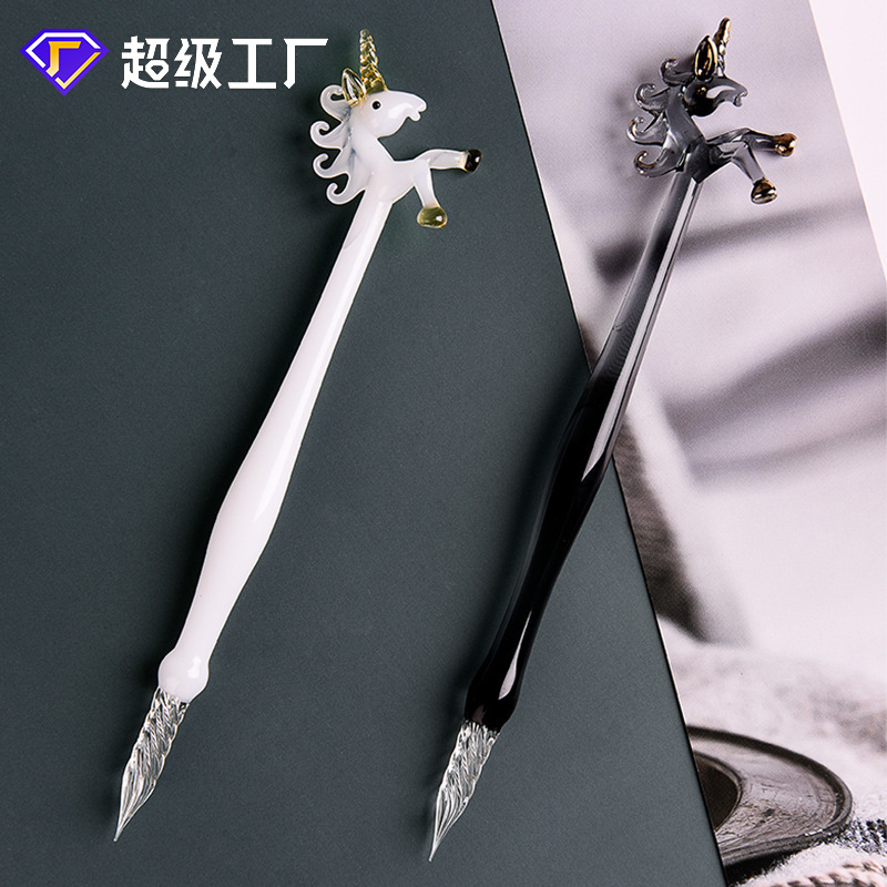 創意的な水筆セットのディザトーン手作りガラス筆ユニコーン筆ギフトボックスインク文房具プレゼント卸売り