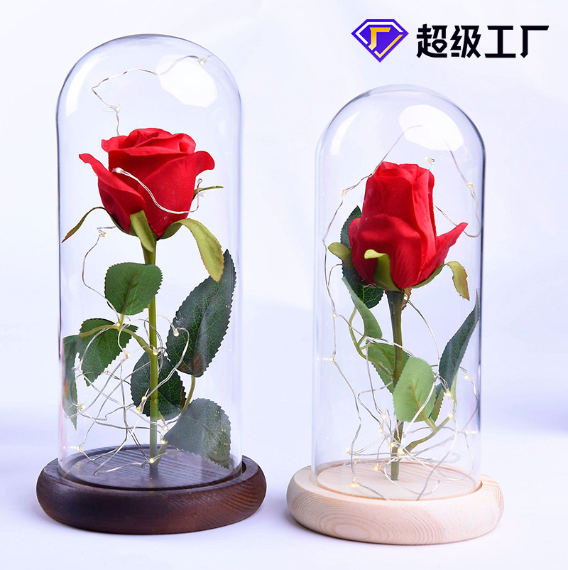 メーカー直販創意木台美女バラ灯永生花ガラスカバー工芸品置物