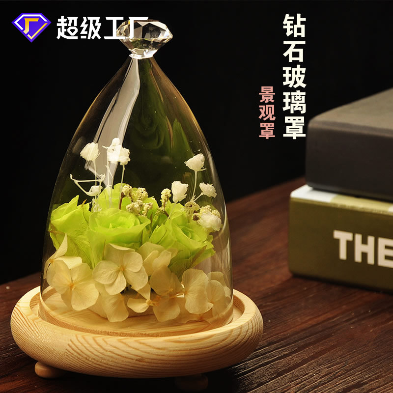 Mxmadeクリエイティブガラス景観カバーダイヤモンドガラスカバー微景観花瓶永生花ガラスカバー
