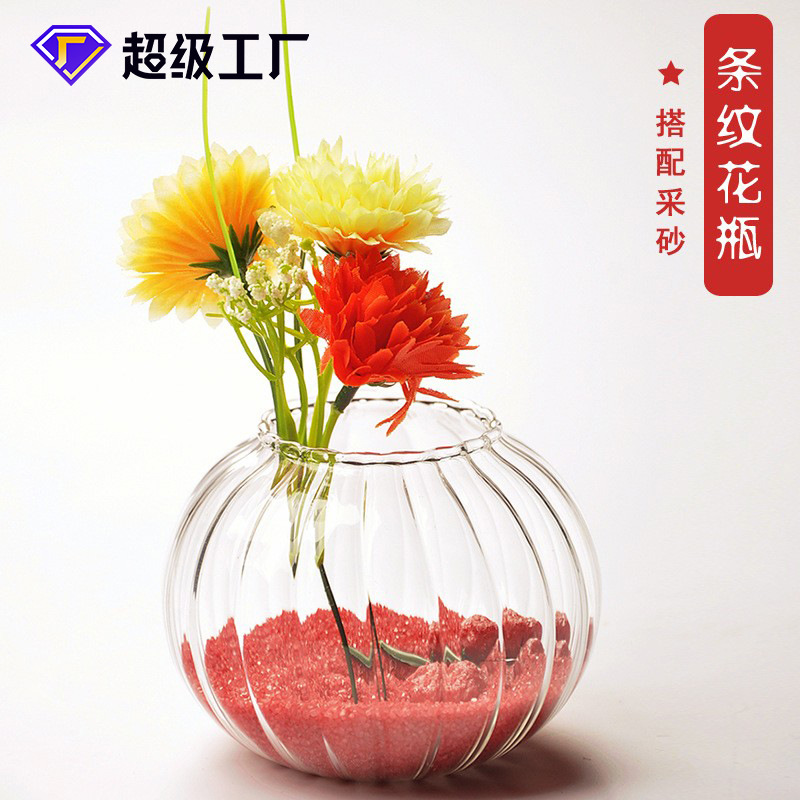 Mxmadeヨーロッパ風クリエイティブストライプカウンター透明ガラス花瓶水培花器ファッション家庭アクセサリー