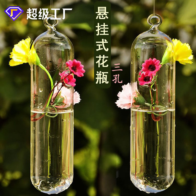 創意ヨーロッパ式吊りガラス多孔単管花瓶水培花器ファッション家庭装飾品