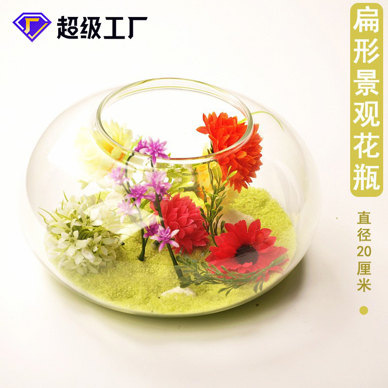 ヨーロッパ式の創意透明ガラスの偏平な形の景観の花瓶の水培花器のファッション的な家庭の装飾品の工芸品